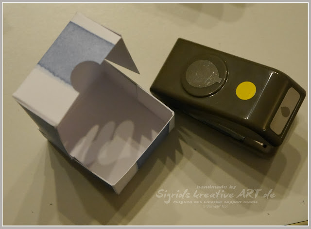 Und bevor du anfängst zu kleben, stanz noch die Griffmulde für den Deckel: