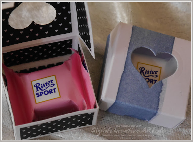 Jede süße Kleinigkeit, die mir in die Finger kommt, muss ich einfach verpacken. Da machen die kleinen quadratischen Schokowürfel auch keine Ausnahme.