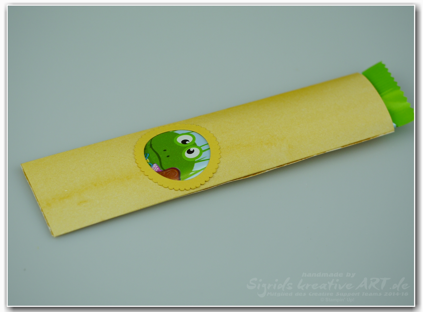 Dekoriert habe ich hier mit dem Gras aus dem Osterkörbchen und der Hummel aus den Li(e)belleien. Aber die Verpackung lässt sich natürlich auch mit allen möglichen anderen Motiven verzieren.