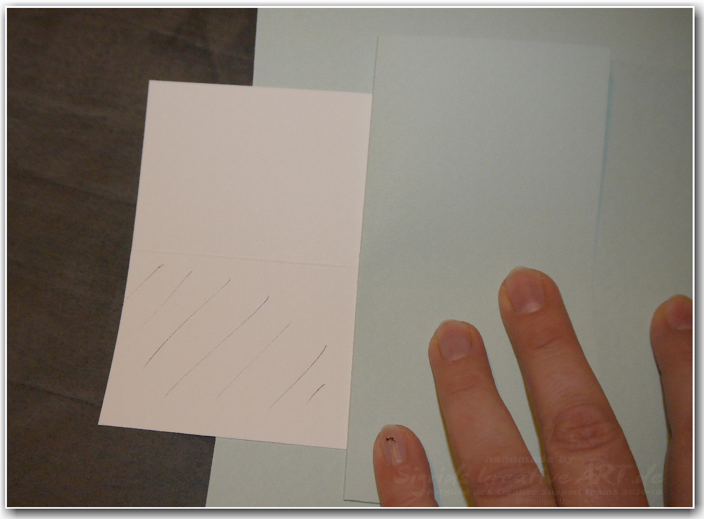 Dieses Papier wird jetzt auf das schon eingeklebte Element gelegt und zwar so, dass das Element komplett verdeckt wird.