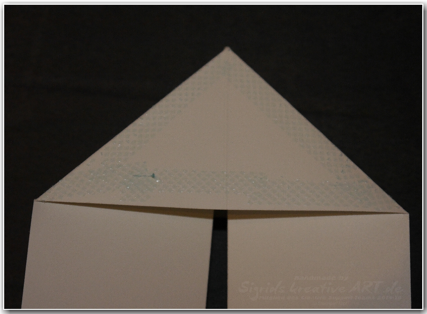 Danach die andere Seite des weißen Papiers mit Kleber versehen, die Karte schließen und fest andrücken. Wenn du jetzt die Karte öffnest, sieht es so aus: